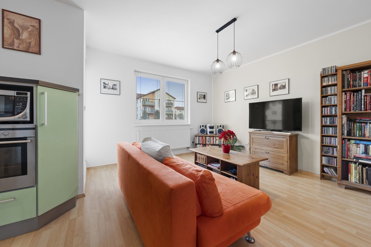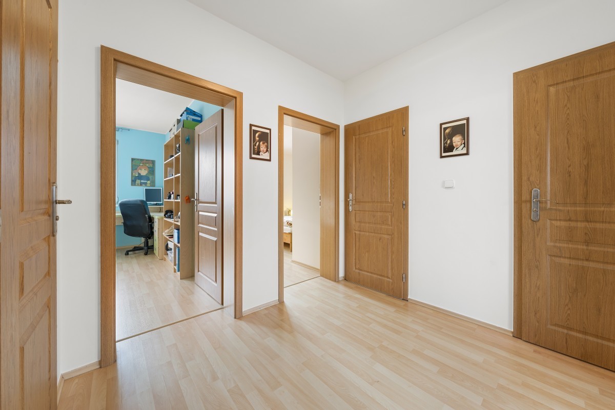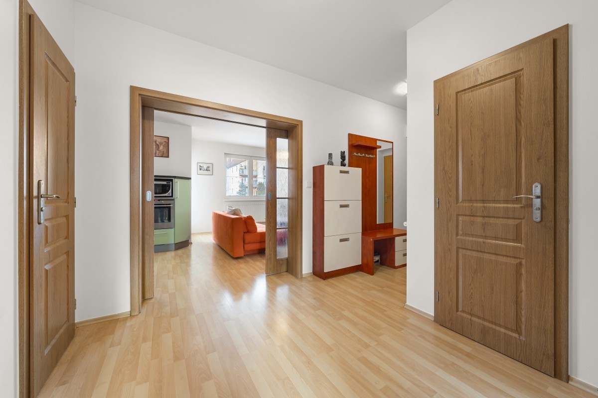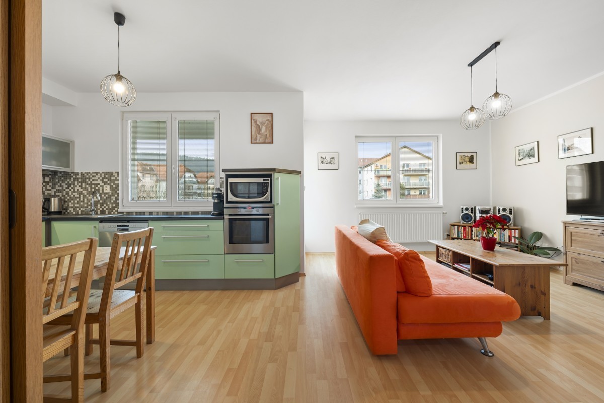 Výhodou je dobrá přístupnost (1.patro tzn. II.NP) i bez výtahu, dostatek denního světla.(ložnice – jihovýchodní orientace, kuchyně, obývací pokoj s balkonem na severozápad).