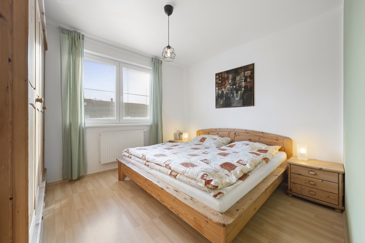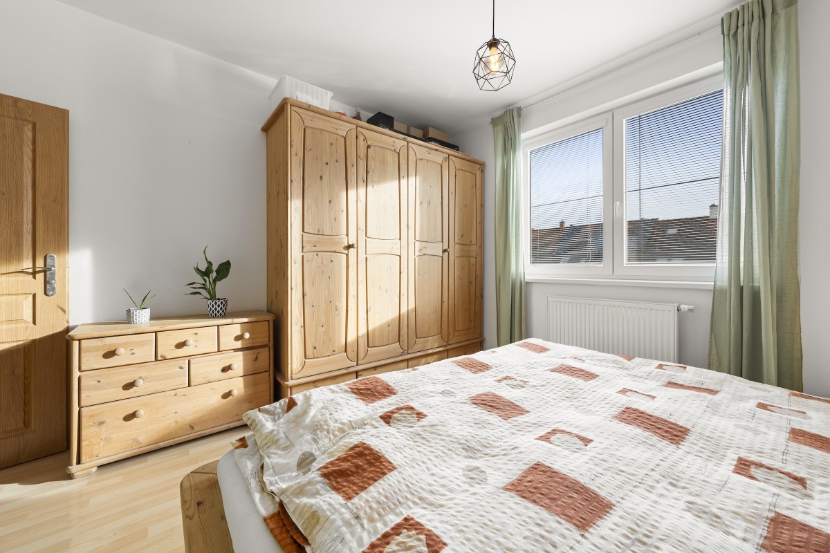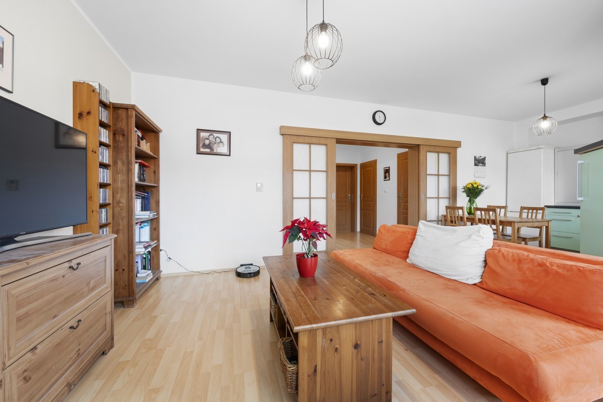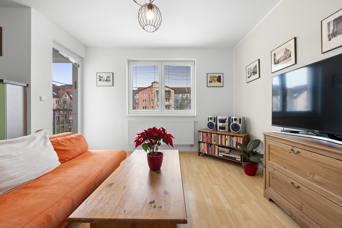 Výhodou je dobrá přístupnost (1.patro tzn. II.NP) i bez výtahu, dostatek denního světla.(ložnice – jihovýchodní orientace, kuchyně, obývací pokoj s balkonem na severozápad).