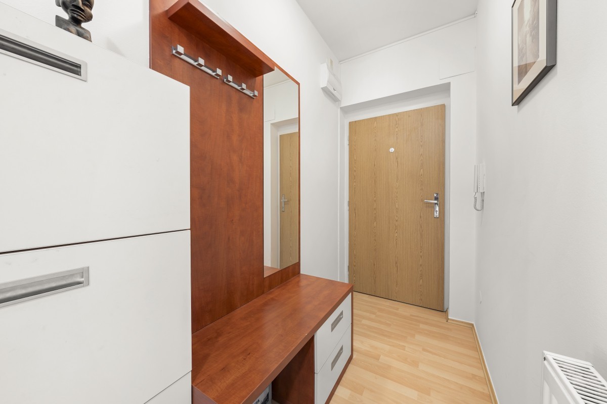 dispozici se dvěma neprůchozími pokoji, vstupní halou se šatnou, kuchyni