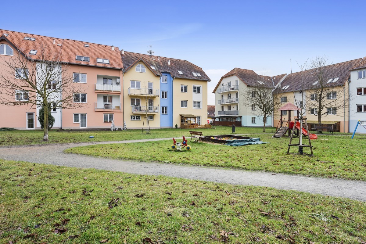 Dětské hřiště je situováno do rozlehlého vnitrobloku a poskytuje tak