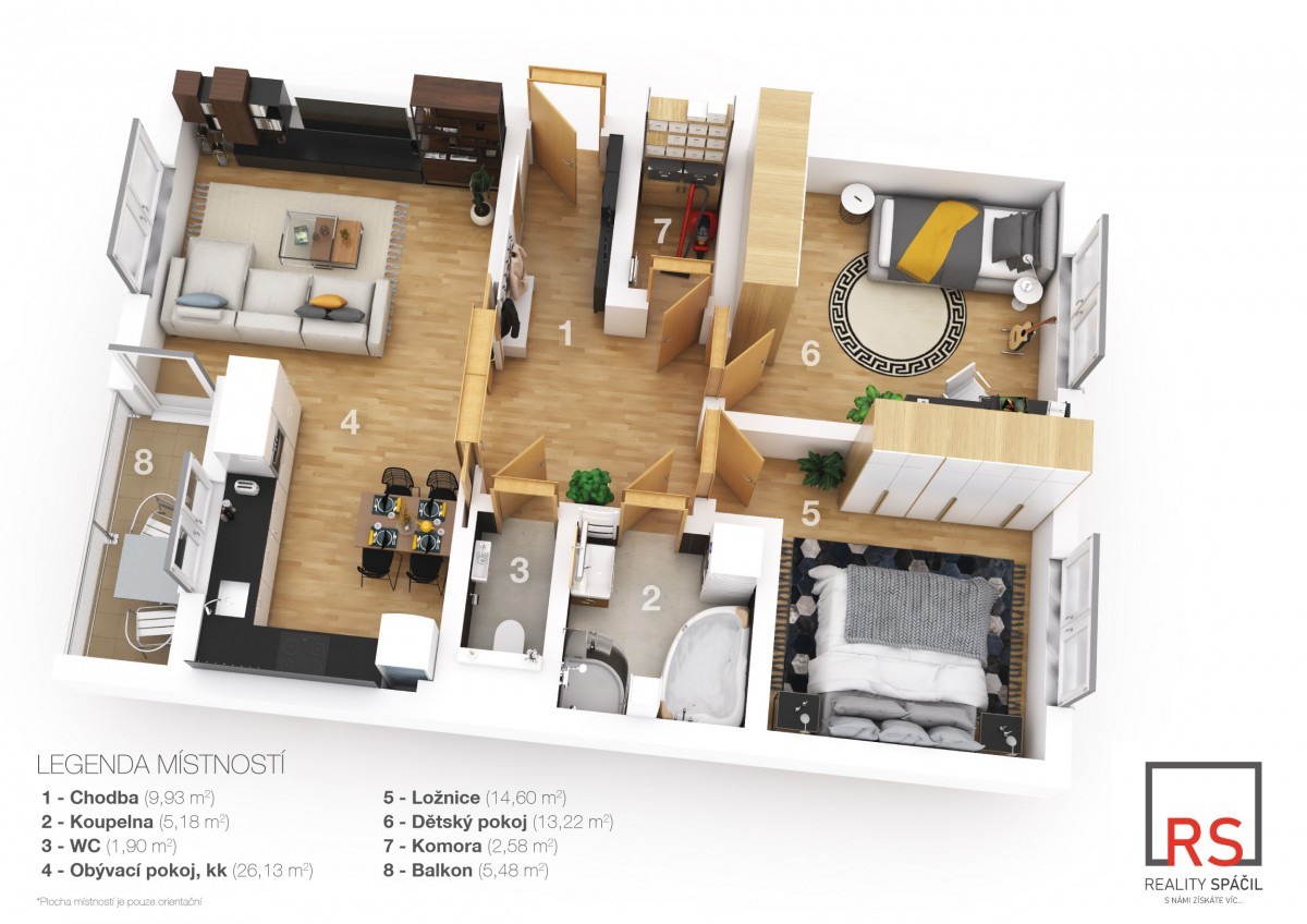 propojenou s obývacím pokojem a vstupem na balkon (s výhledem do