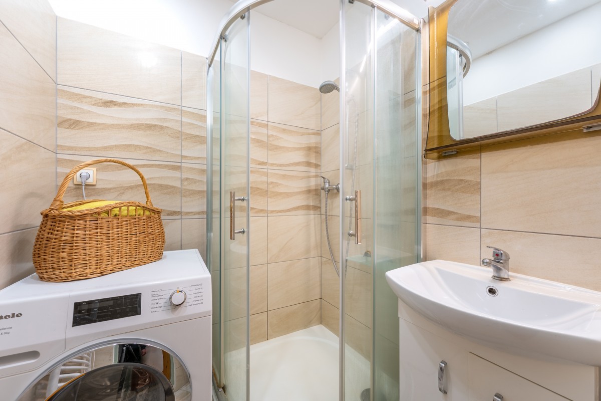 • Zděné jádro s koupelnou se sprchovým koutem a odděleným WC.