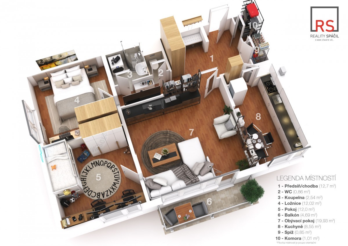 • Prostorný balkon (5 m²) s orientací na západ, který nabízí