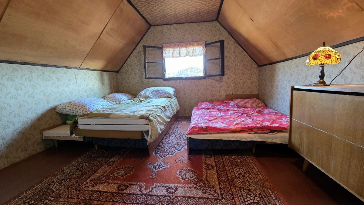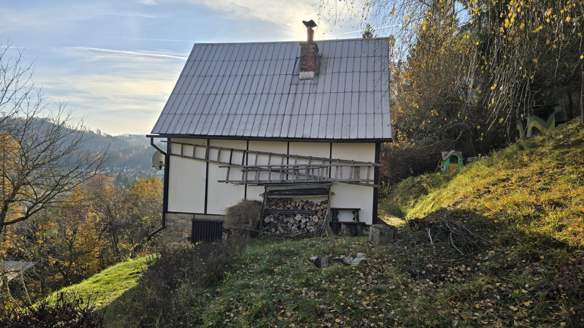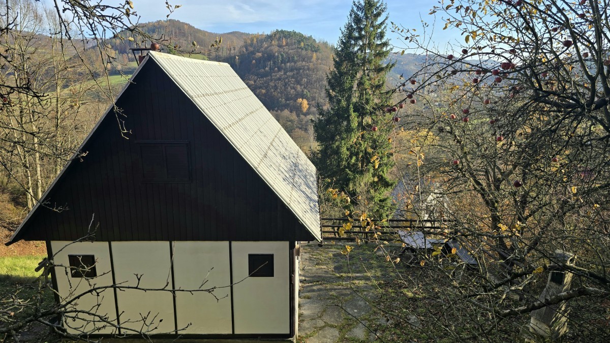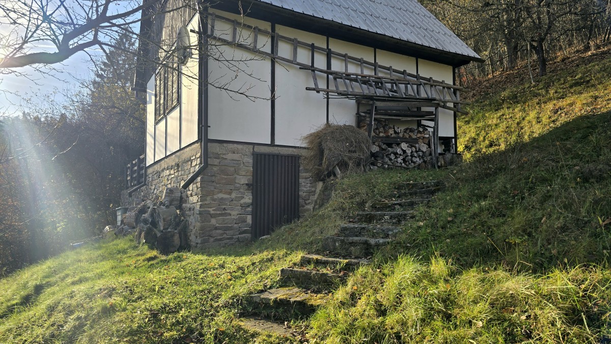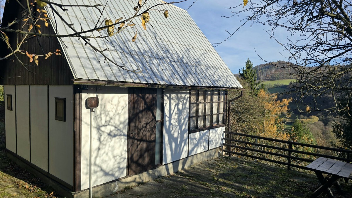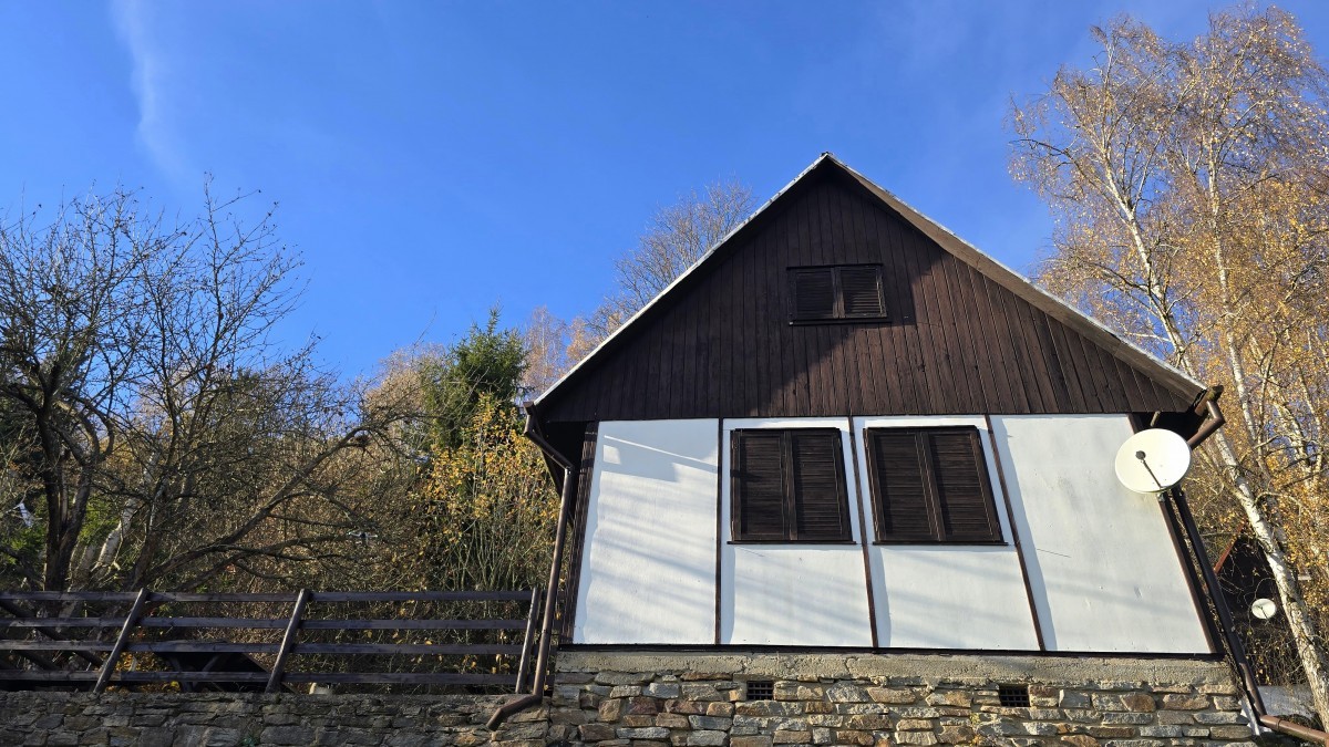 Konstrukce: Udržovaná chata na pevné kamenné podezdívce s dřevěnou